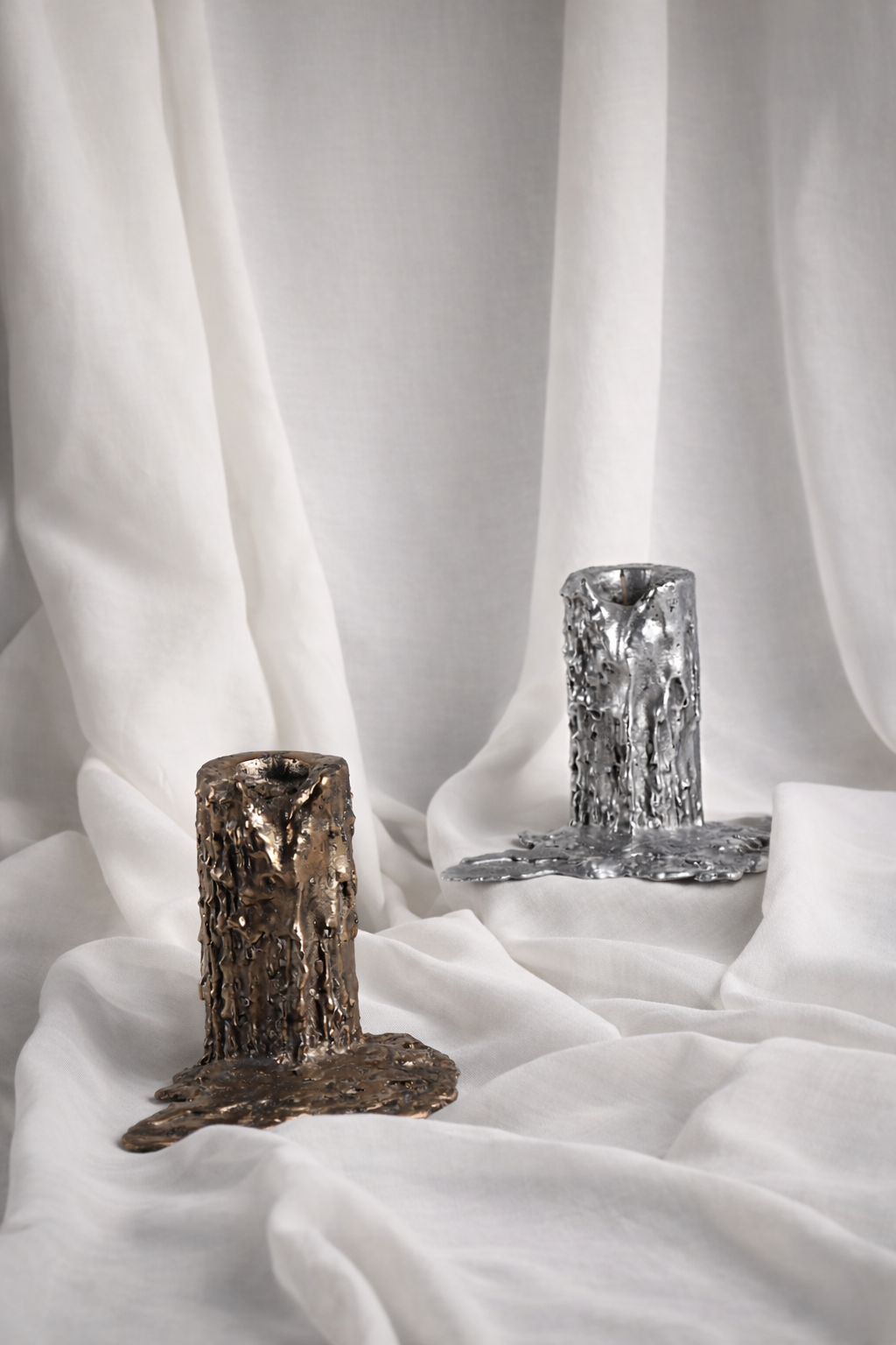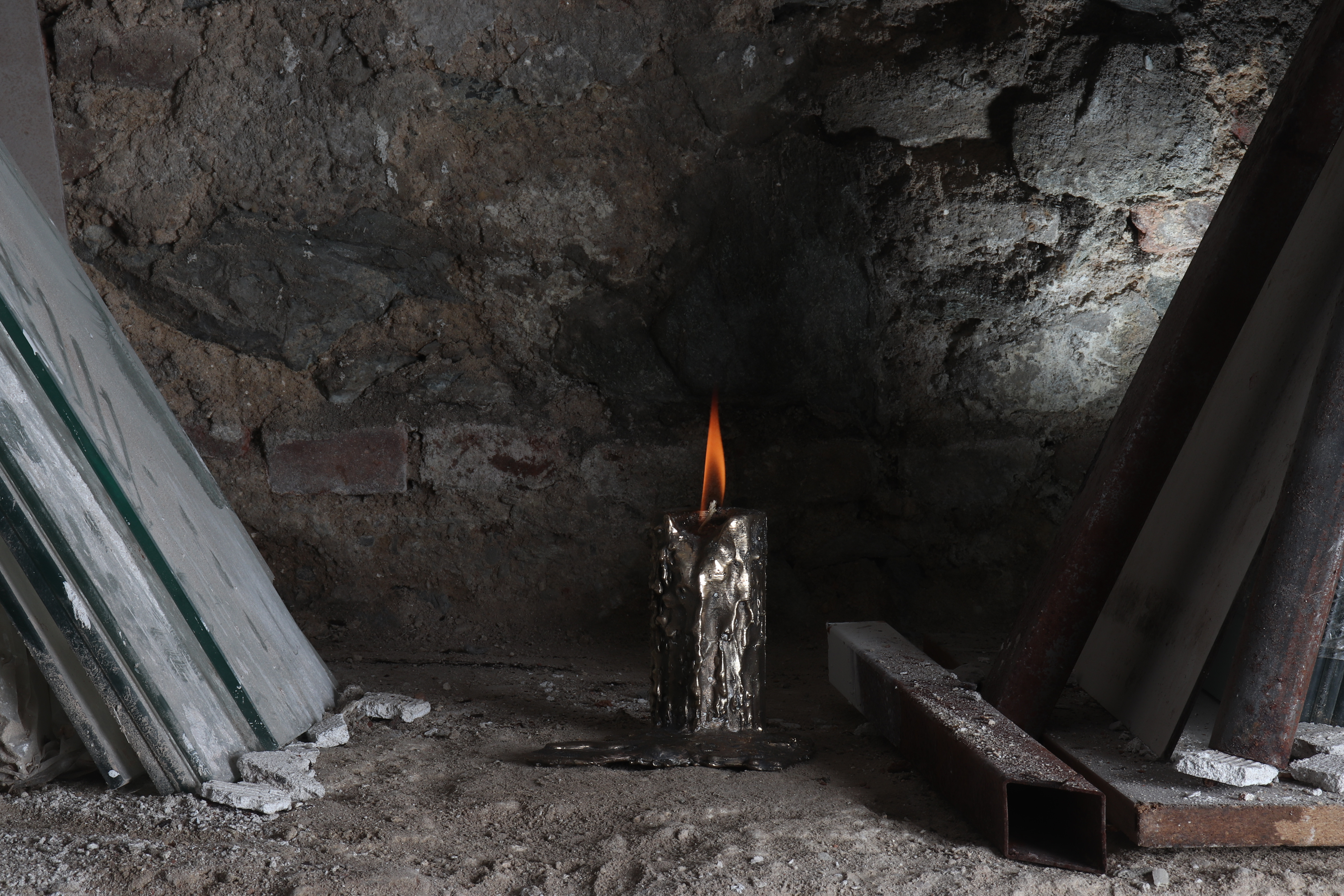 Hand-cast in bronze and aluminium, this object sits between candle and oil lamp, reimagining a timeless source of light. Designed to work with lamp oil, it comes in two sizes and two materials, offering variations in weight, texture, and presence. More than illumination, it invites reflection on how material and form shape our everyday rituals. A contemporary take on ancient firelight, it is both functional and contemplative. A collaboration between Repete design studio and London based designer George Goodwill.
